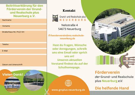 Unser am 2. März 2010 gegründeter gemeinnütziger Verein unterstützt die Grund- und Realschule plus in Neuerburg bei Projekten, für die öffentliche Mittel nur begrenzt zur Verfügung stehen, die aber für das Lehren, Lernen, Leben und Wohlfühlen aller in der Schule wichtig sind!