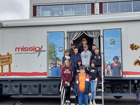 Auch in diesem Jahr machte der Missio-Truck auf Initiative von Herrn Förg Station am Schulzentrum. Der Besuch des Trucks war die logische Fortführung unserer Veranstaltung "Mit Kindern über den ukrainischen Krieg sprechen".