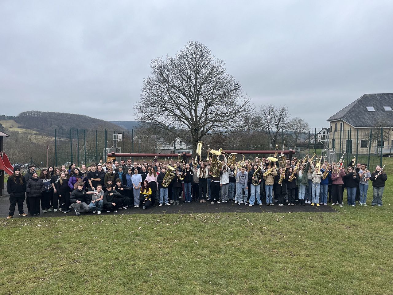 Frei nach Mozarts Motto "Ohne Musik und Kunst wäre alles nichts!" machten sich 100 Schülerinnen und Schüler des Staatlichen Eifel-Gymnasiums und der Realschule plus Neuerburg mit ihren betreuenden Fachlehrkräften Anfang Februar 2026 auf den Weg nach Prüm in die dortige Jugendherberge, um sich drei Tage lang intensiv der Welt der Musik und des Theaters zu widmen.