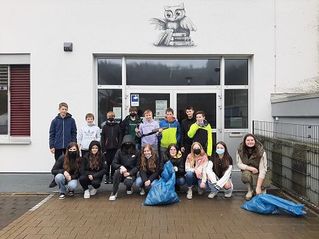 In Kleingruppen machten sich die Jugendlichen auf den Weg und säuberten die Grünflächen rund um das Schulgelände von achtlos weggeworfenem Müll.